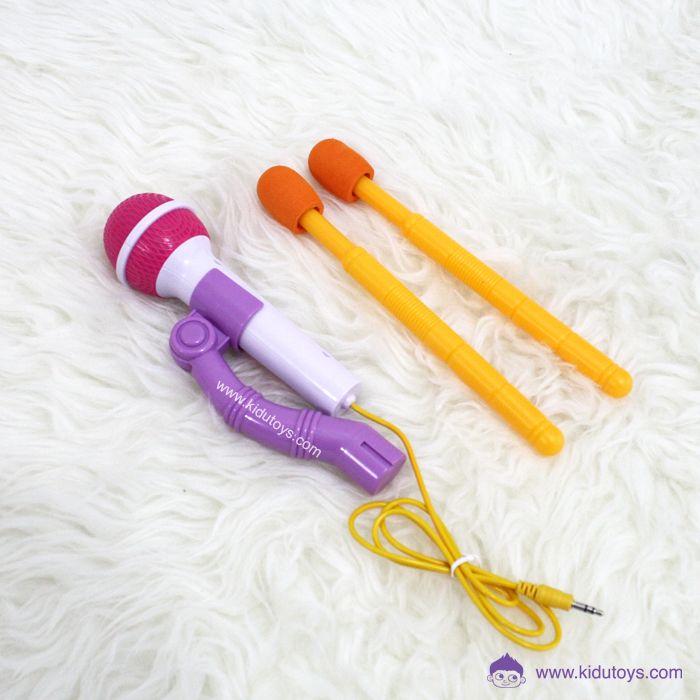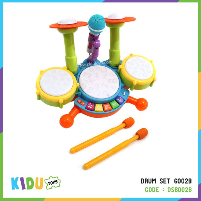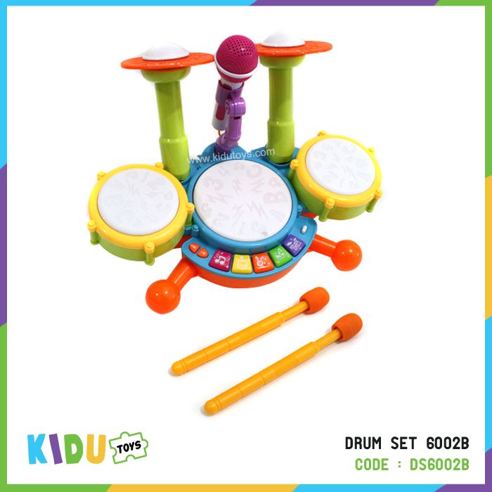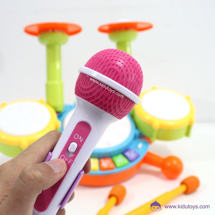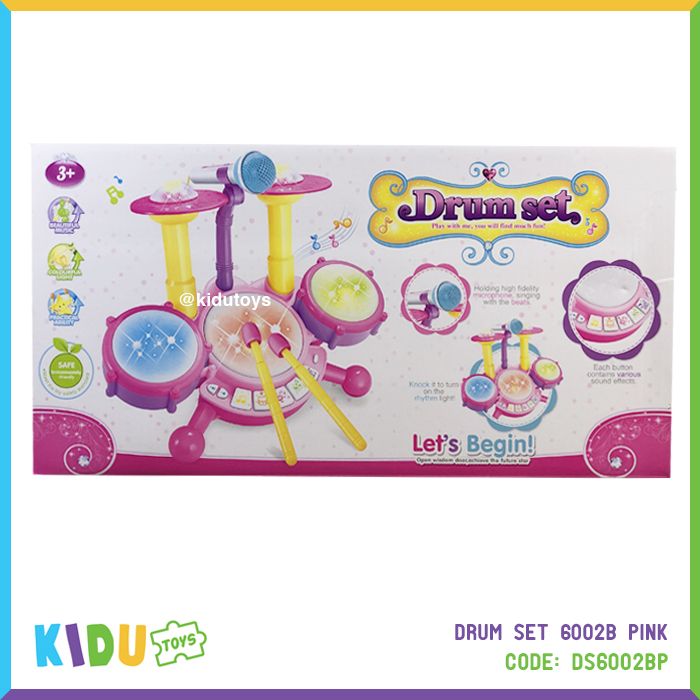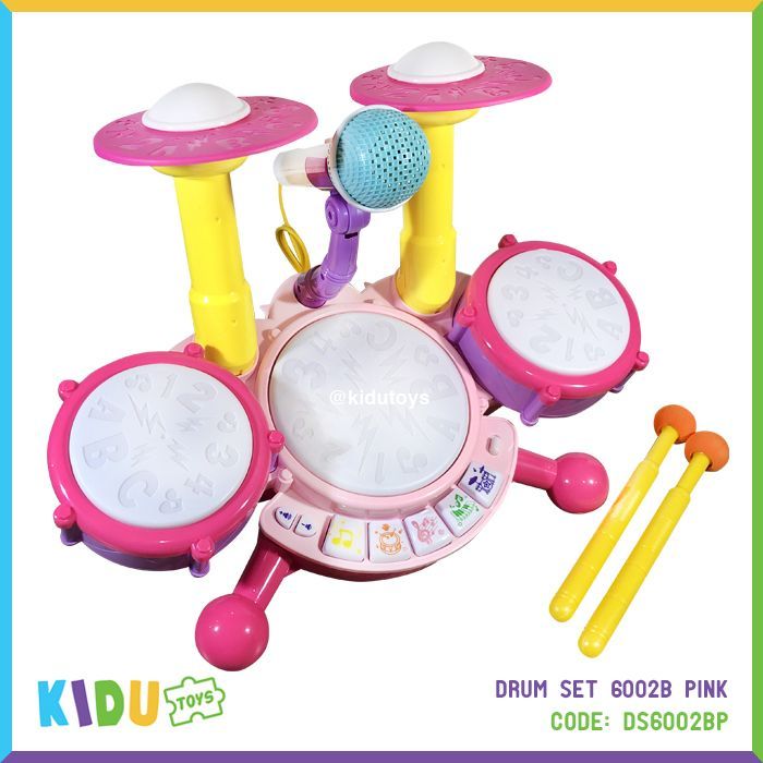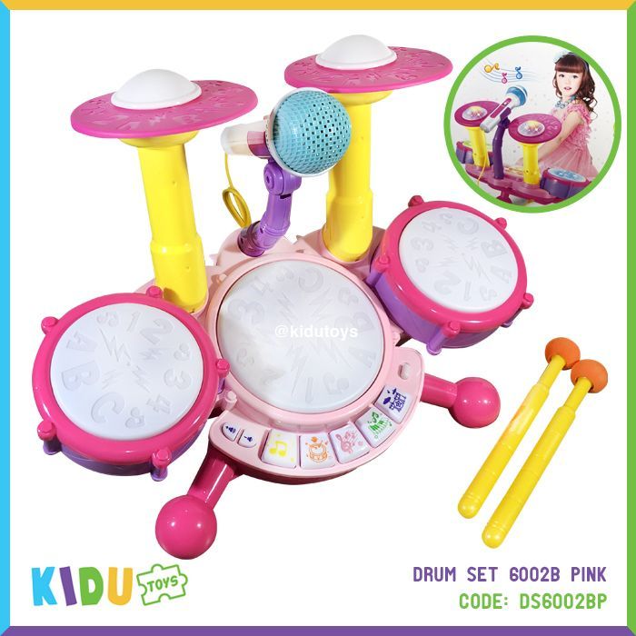 Spesifikasi: Berat 1303gr, ukuran P: 40cm L: 17cm T: 20cm, usia 3tahun+, terdapat musik, satu set drum dan mikrofon, menggunakan 4 baterai AA