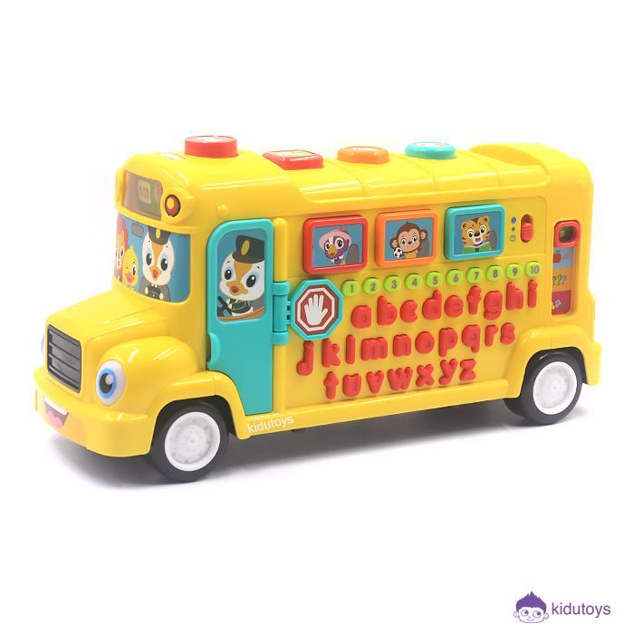 Spesifikasi: Berat 1091Gr, Ukuran mainan P: 40cm, L: 18cm, T: 22cm. Isi mainan terdiri dari 1 buah bus sekolah mainan menggunakan 3 baterai, untuk usia anak 1 Tahun +.